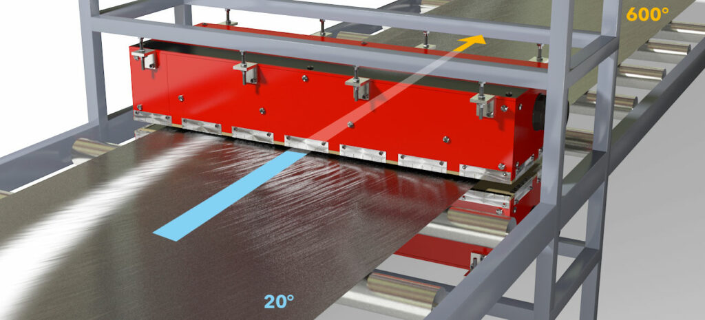 The technology is suitable for heating of strips, rollers and parts i.e. preheating, heat treatment, drying, crimping, lamination and de-lamination in manufacturing industry.